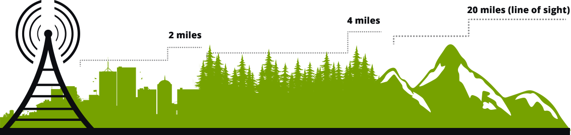 - Non-Line of Sight – up to 2 miles for voice, up to 4 miles for data